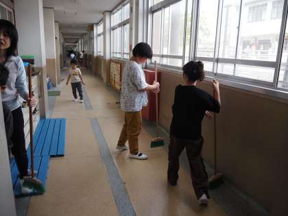 今週から掃除が始まっています。6年生は1年生の教室も一緒に掃除しています。お手本になるように1年生の教室を掃除しています。