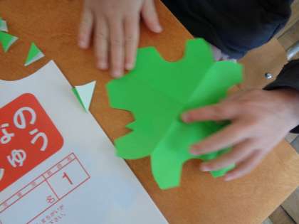 今日ははさみを使って、飾りを作りました。初めに、はさみの使い方について学び、安全に気をつけてはさみを使いました。紙を折ってから切ってみると、面白い形ができ、友達との違いや自分の作品の面白いところをお話ししながら楽しく学習しました。今度はできた飾りを使って素敵な作品に仕上げます。どんな作品になるのか楽しみです!!