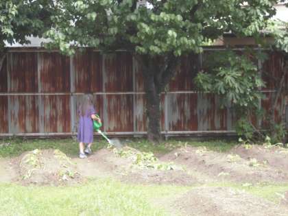 嵯峨野ファームで育てている、ミニトマトやさつまいものお世話を頑張っています。