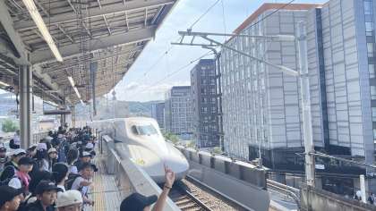 京都駅を出発しました。子どもたちはそれぞれの席で楽しんでいます