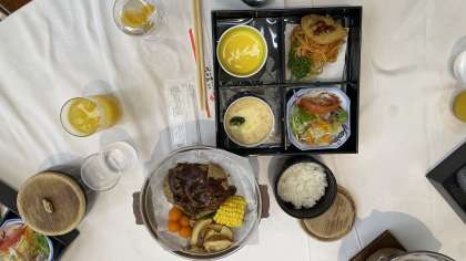 部屋に荷物を置いて夕食をいただきました。この後の活動でも、仲間との絆を深め楽しんで取り組みたいと思います。