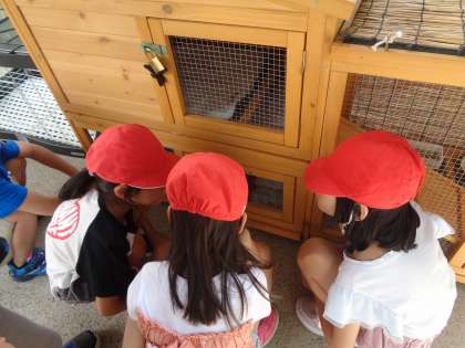 今日は学校にいる生き物について話し合いました。ウサギ・鯉・あり・とんぼ等いろいろな生き物が学校にいることを交流しました。その後,「見つけに行きたい!」という声が出てきたので学校の中の生き物を探しに行きました。学習後は「もっと探したい!」「育ててみたい!」という意見が出ていました。これからの学習も楽しみです!