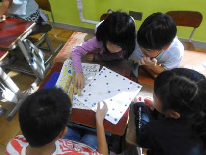どのクラスも、サイコロの変わりの棒を一生懸命に投げて盛り上がっていました。