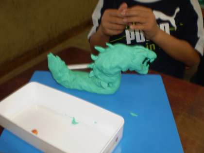 図工の時間に,「こんな動物がいたらいいな」と思う動物を想像して,粘土で作りました。「空とぶペンギン」や,「荷物をはこぶきゅうりゅう」「やさしいサイ」など,アイデアいっぱいの動物ができました。そして,友達の作品も興味深く鑑賞していました。