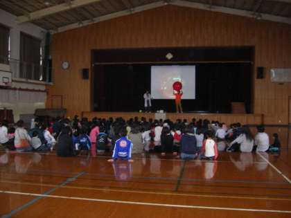 日食観察講習会が行われました。土曜日にもかかわらず、子どもたち、保護者の皆様、多数ご参加ありがとうございました。どうして日食がおこるのかをボールを使って分かりやすく説明してもらうとともに、日食観察の注意点をしっかり教えていただきました。そして、講師の先生方お二人は、日食の準備に月に旅立たれました?!