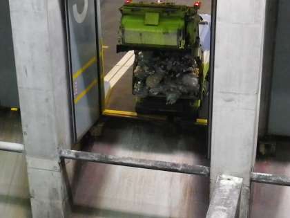 初めて見るごみピットに次々と入ってくるパッカー車がごみを投入していく