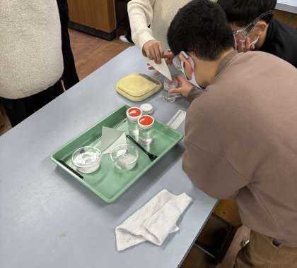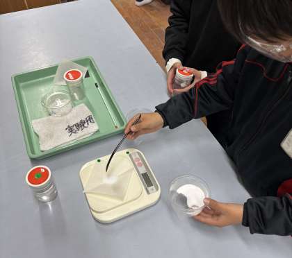 「もののとけ方」の学習に入りました。食塩とミョウバンを水にとかし、とかした後の重さをはかったり、水を蒸発させたりして、とけたもののゆくえを調べました。全体の重さがとかす前ととかした後では変わらないことや、蒸発させると食塩やミョウバンがでてきたことから、考察しました。目に見えないだけでとかしたものは、水の中にあるんだということに気づいていました。
