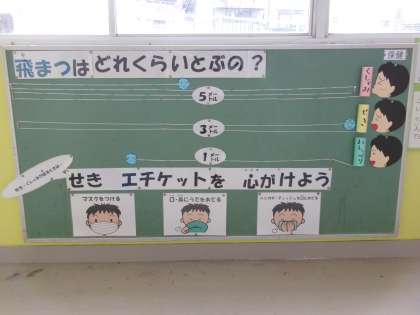 このしぶきを「飛まつ」といい、インフルエンザなどのウイルスが入っていると、他の人の体の中に入って、感染することがあります。
