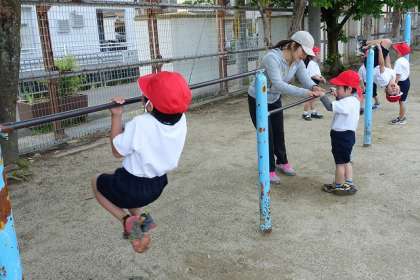 鉄棒のにぎり方や、活動する時の約束を確認してから、活動に取り組みました。ぶら下がったり、回ったり、いろいろな技に挑戦しました。