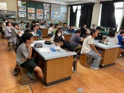 理科の学習では、養分や水分を体の中に取り入れる時、どのような仕組みで取り入れているのか調べています。
