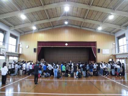 多くの保護者の方や教職員に見送られて広島へ出発しました。修学旅行を通して、仲間との絆を深め、思い出いっぱいの修学旅行にしてほしいと思います。