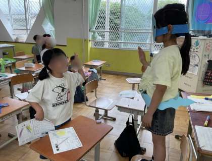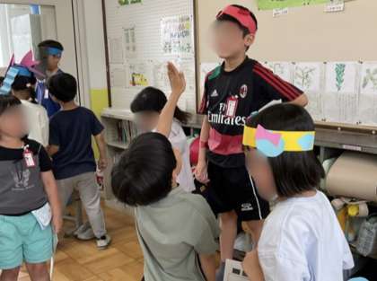 学習の最後に、自分が作った作品のお披露目会をしました。「工夫したところはどこですか?」「これはどうやって作ったのですか?」など、お互いに興味津々に鑑賞し合っていました。