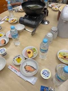 おはようございます。みんな時間通りに起きて、シーツや布団などを片付けていました。早く片付けてUNOやトランプをして遊んでいる班もいました!朝ごはんを食べて今日も元気いっぱいです!