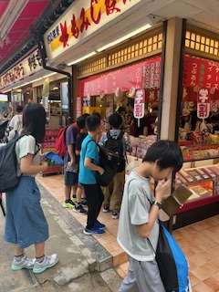 買い物の時間です。お土産を渡す人のことを考え、思い思いに買い物を楽しんでいます。