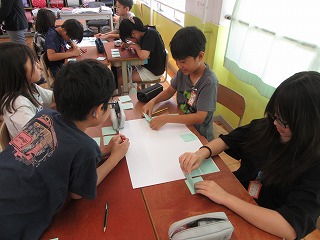 本日、インストラクターの方をお招きし、情報モラルについて学習しました。インターネット投稿の事例を見た後、どのようなことに気をつけなければならないのかグループで話し合いました。この機会にお家でもインターネットの利用の仕方について話し合い、正しく利用できるようになってほしいと思います。