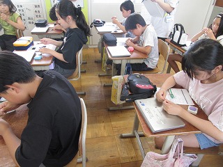 家庭科では裁縫の学習が始まりました。みんな真剣な表情で取り組んでいます。初めて使う針と糸に苦戦している児童もいましたが、できるようになると嬉しそうに「できた!」と話していました。