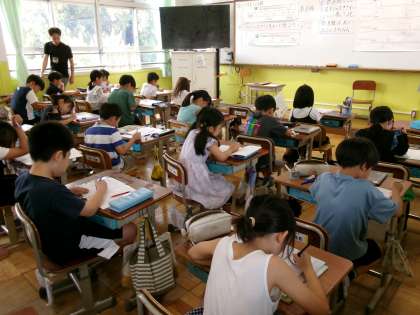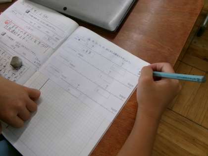 算数では、大きな数の数直線について学びました。1目盛りの大きさに気をつけながらよみとりました。