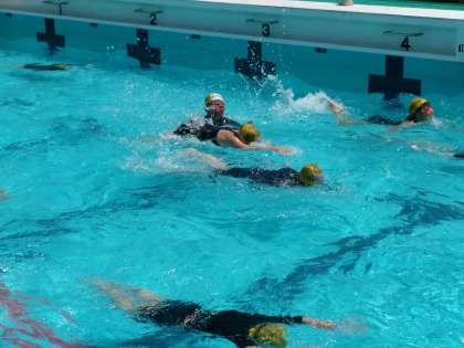 自分が泳げる泳ぎ方で、泳げるきょりをのばすことを目標にしたり、少しがんばれば泳げそうな泳ぎ方に挑戦したりしています。