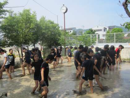 初めて田んぼに入る子もたくさん。
