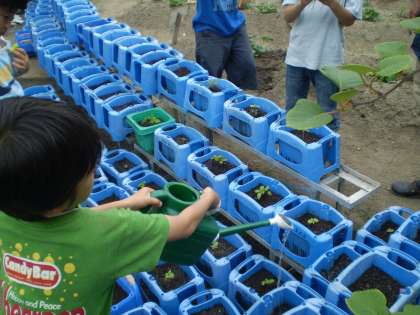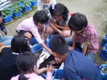 子どもたちは,毎朝忘れずにお花の水やりをしています。ホウセンカがだいぶ大きく育ってきたので植木鉢に植え替えをしました。きれいな花が咲くように,これからも大切に育ててほしいです。