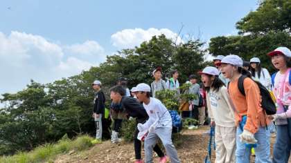 雲取山の北峰で昼食を食べ休憩しました。大きな声で叫んでいる子どもたちもいました。まだまだ元気な子どもたちです。