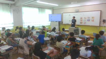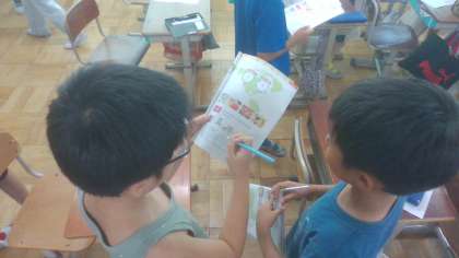 子どもたちは、自分の好きな時間帯について友達と英語で伝え合いました。寝る時間帯が好きという子もいれば、友達と遊んでいる時間帯が好きなど、様々でした。