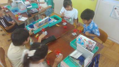 4年生の理科「電気のはたらき」の学習で、電池とプロペラをつないだ回路を作りました。今回は「電池の向きを変えるとどうなるのだろう」という学習問題で実験に、取り組みました。予想では、”何も変わらない””プロペラが止まってしまう””回る向きが逆になる”などいろいろな意見がでました。実際に電池の向きを変えると、プロペラ回る向きが変わり、子どもたちは驚いていました。