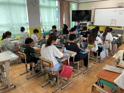 1学期最後の国語科の学習は、「私と本」という単元です。ブックトークを行うために、GIGA端末を使って台本を書いています。