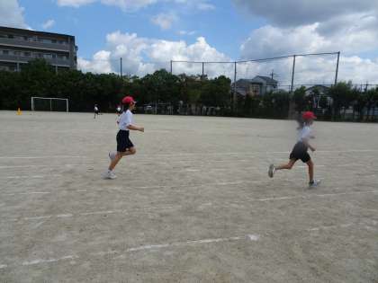 4年生は運動会に向けて80m走のタイムを計りました。自分の記録を少しでも伸ばそうと、一生懸命走っていました。