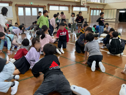 まずは進化じゃんけんです。いろいろな動物になりきって、全力で体を動かしていました。