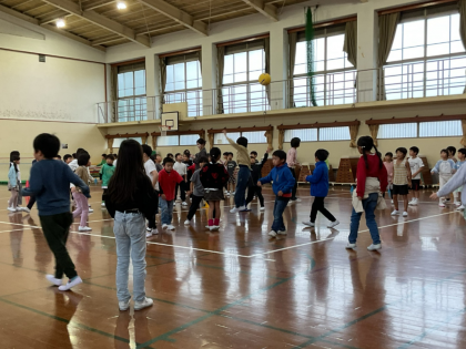 普段から休み時間にドッジボールを楽しんでいる子どもたち。白熱した試合になりました。
