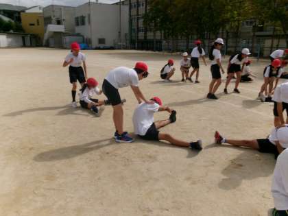 体育科の学習では、『体ほぐしの運動』に取り組んでいます。体を動かす楽しさや、心地よさを味わっています。