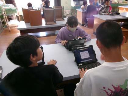 理科『大地のつくりと変化』の学習も終盤です。単元の学習問題「アンモナイトの化石は、なぜエベレストで発見されたのだろう」について、学んだ事を生かしてタブレット端末でまとめています。