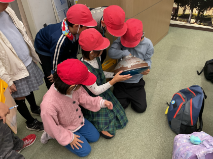 普段、目にしているものですが手に取ってみるとあまりの大きさに驚いていました。