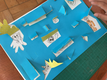 いろいろな窓を開けて、中に見えるものを考えました。お友達と交流しながらアイディアを広げたり、窓の開け方を工夫している様子が見られました。