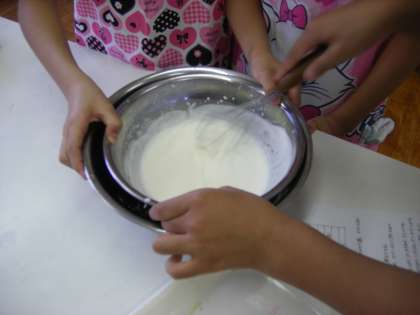 毎回、色々な料理に挑戦しています。この日は、夏らしい“紅茶ムース”。白い生クリームと薄茶色の紅茶クリームのの2層になるように工夫しました。