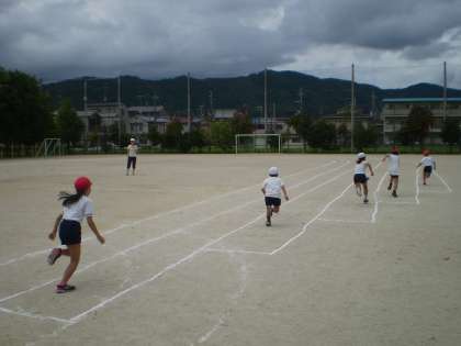 3年生は,運動会で初めて80m走に挑戦します。50mとは違い,スタートする位置がコースによってちがうことに少し驚いている子もいました。オリンピックのボルト選手のように,ミニ・ボルトになってゴールを目指してほしいです。