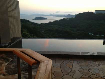お風呂は露天風呂もあります。海が見える!きれい!と気分も眺めも最高のようでした。たっぷりと旅の良さを満喫しています〜〜〜