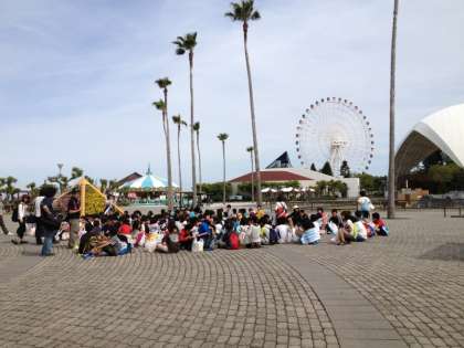 出発です。かわいいキャラクターともお別れ。楽しかった修学旅行の思い出と、袋いっぱいのお土産と共に帰路に着いています。間もなく到着です。