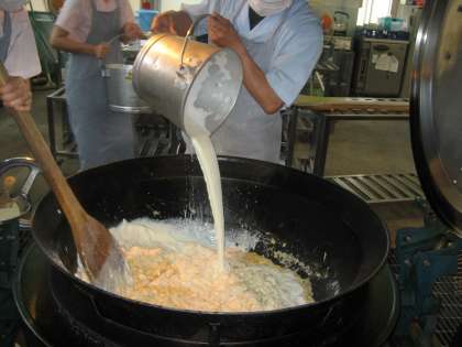 コーンのクリームシチューは,バターと小麦粉からの,手作りルウです。しっかり炒めて,じっくり煮込みます。