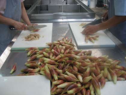 ランチルームで給食を食べていた4年生は,伏見とうがらしクイズに答えながら大事そうに味わっていました。また,給食ができるまでの様子を写真でみながら,「すましじるに入っているのは,みょうが!」と,写真と照らし合わせながら,食べていました。とりそぼろ丼の具が,給食調理員の手で,細かく細かくみじん切りにされていることにも驚いていました。