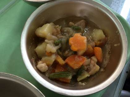 毎月かわいい形にくりぬいたにんじんやこんにゃくが,おかずの中に入っています。目でも味わって,少しでも楽しい給食時間が過ごせるように,との給食調理員のねがいがこもった,人気の取組です。お皿に幸運がやってきた人には,給食調理員お手製の美しいしおりがもらえます。