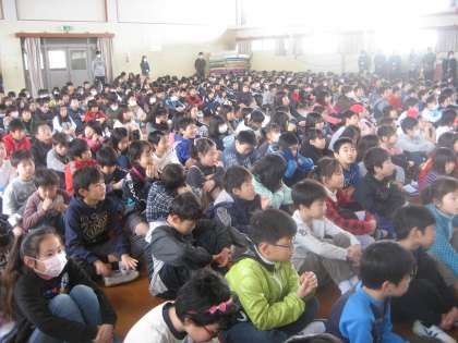 全校児童,給食調理員の心のこもったメッセージを真剣に聞き入り,給食への関心が高まったようでした。