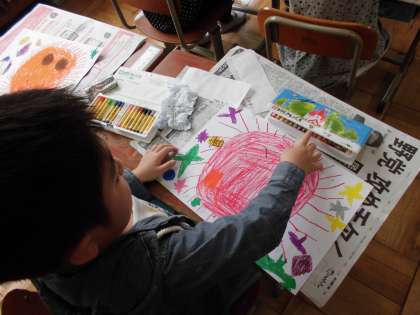 どの子も 様々な色を使って,すてきなおひさまを 描いていました。