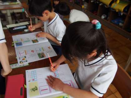 今日は,数字をていねいに書く練習をしました。形をとるのに苦戦しながらも,正しい鉛筆の持ち方でていねいに書いていました。