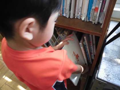 本の整理する子,椅子を運ぶ子,机を拭く子。