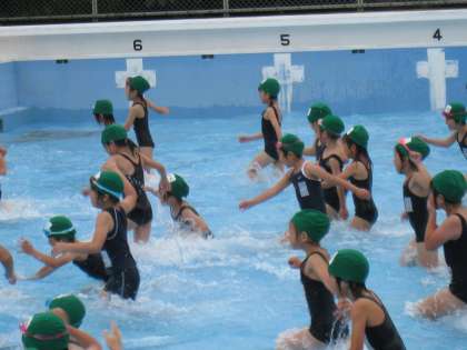 6月になり,いよいよ水泳の学習が始まりました。1回目は,水につかって「かえる」や「わに」などの動物になったり,宝物さがしゲームをしたりしました。1年生は,約束を守り,元気いっぱい水遊びを楽しむことができました。