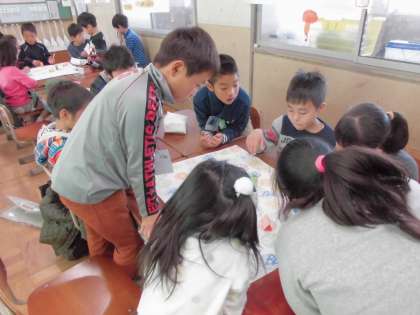 1月15日(金)3時間目は笑顔いっぱいすごろく集会が行われました。縦割りグループで6年生が作ったすごろくをします。工夫されたすごろくに下級生たちも喜んでいました。文字通り笑顔でいっぱいになりました。