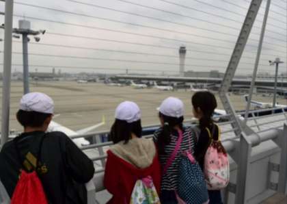 その後,中部国際空港セントレアにきました。雨の心配がなくデッキで飛行機の発着を見たりグループ写真を撮ったりしました。このあとイチゴ狩りに向かいます。
