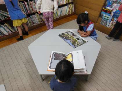 子ども達がずっと楽しみにしていた図書室へ初めて行きました。図書室の使い方や約束を学んだ後,好きな本を1冊選んで借りました。